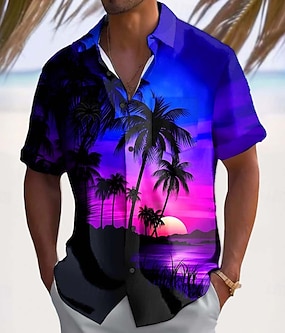 Herre Kokosnøttre Gradientfarge Tropiske planter Hawaii skjorte Skjorte med knapper Aloha skjorte Kortermet Hawaiisk Avslappet Feriereise Sommer Vår Aftæpning 3D-utskrift krage skjorter Front One
