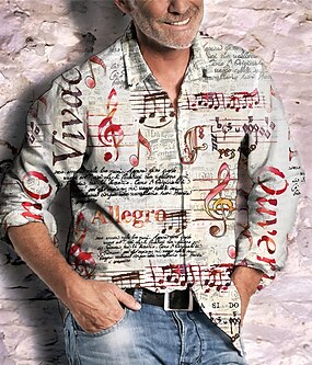 Herre Årgang Musikk Noter Skjorte Skjorte med knapper Langermet Mote Gatemote Designer utendørs Avslappet Daglig Sommer Vår Høst Aftæpning Trykt mønster Rød Blå Lilla Grønn Grå