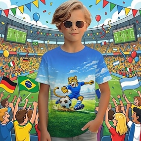 Gutt 3D Grafisk Leopard Fotball T skjorte T-skjorte Kortermet 3D-utskrift Sommer Vår Sport Mote Gatemote Barn 4-12 år Crew-hals Avslappet Daglig utendørs Normal