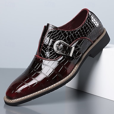 Herresko med burgunderfargede krokodillepregede munkestropper og spisse tå, formelle forretningssko til bryllup, kontor, banketter, fester og raffinert herrestil