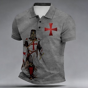 Herre Kors Poloskjorter Kortermet Poloskjorter Skjorter med krage Fritid utendørs Dagligdagstøy 3D-utskrift Knapper Sommer Vår Blå Brun Grønn