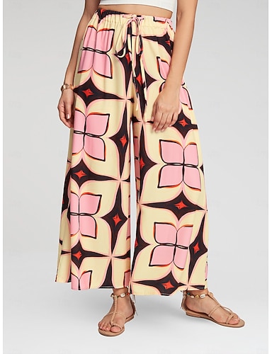 Dame Bukser med brede ben Maxi Mikroelastisk Medium Midje Bohem Ferie Feriereise Hjem Avslappet Blek Rosa Vår & Vinter Kryss-sesonger S M L