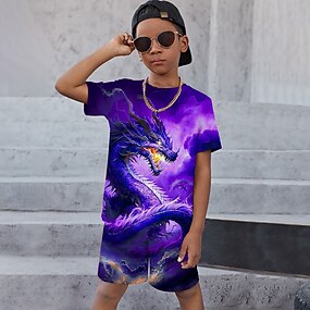 Gutt 3D Grafisk Dyr Drage T-skjorter og shorts T-skjortesett Tøysett Kortermet 3D-utskrifter Sommer Vår Aktiv Sport Mote Barn 3-13 år utendørs Feriereise Gate Normal