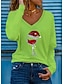 Jul Dame T skjorte Grafisk Vinglass Årgang Stilfull Klassisk Langermet V-hals Vanlige topper Daglig Trykt mønster Hvit Lysegrønn Rød Vår Høst Vinter