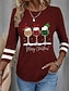 Jul Dame T skjorte Grafisk Vinglass Årgang Mote Stilfull Langermet Crew-hals Rund hals Vanlige topper Daglig Helg Trykt mønster Rød Blå Lilla Grønn Sommer Vår Høst Vinter