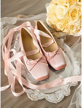 Rosa satengballetsko til dame med bånd, elegant og feminint design, perfekt for balletttimer, danseforestillinger og spesielle anledninger
