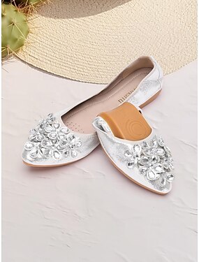 kvinners sammenleggbare leiligheter i sølv med rhinestone-pynt - komfortable, lette sko for reiser, fester og spesielle anledninger