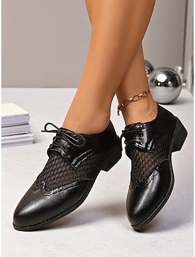 oxford-kjolesko i meshpanel for kvinner – pustende brogue-sko med snøring til kontor-, fest- eller danseanledninger