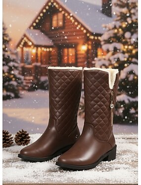 Brune, vatterte vinterstøvler til dame med fuskepelsfôr og glidelåsdetaljer, stilige og varme, perfekte for høytidsfester, vinterfriluftsliv og hverdagsbruk