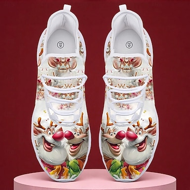 Herrejulesneakers med julenissens og alvenes trykk – morsomme og komfortable sko til julehandel, familiesammenkomster og høytidsfeiringer