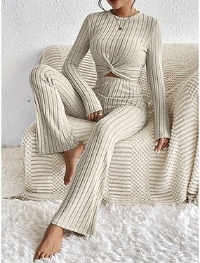 Kvinne 2 Deler Varm Komfort Myk Pullover Langermet Lange Bukser Crew Hals Bokstav Elastisk Liv Hjem Daglig Seng Rosa Mørk Rosa Blå Høst