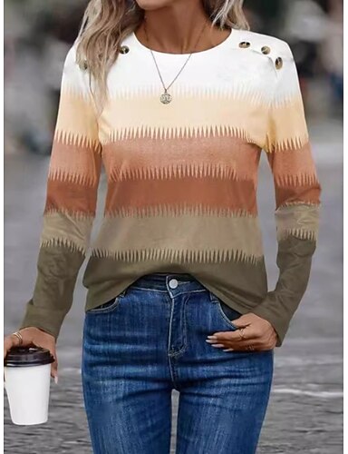 Dame T skjorte Glidelås Trykt mønster Grafisk Geometrisk Stripet Elegant Årgang Stilfull Langermet Rund hals Hals med hakk Vanlige topper Daglig Helg Rosa Vår Høst Vinter