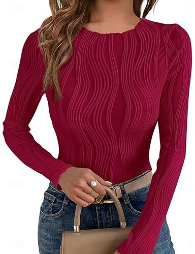 Dame Bluse Helfarge Stilfull Fritid Langermet Crew-hals Vanlige topper Daglig Blå Svart Rød Grønn Kakifarget Vår Høst Vinter