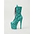 Grønne damestøvletter i lakkskinn med slangeskinnstekstur og blokkhæl i strass, trendy motestøvler for kvelder ute og fester &hverdagsantrekk