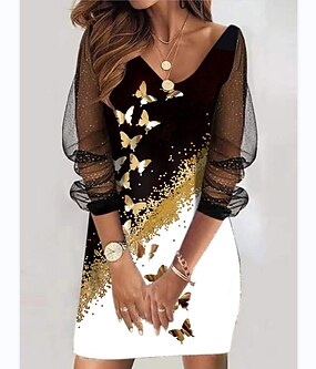 kvinners mesh fritidskjole skiftkjole dyr prikkete mesh-trykk v-hals mesh-ermet minikjole elegant daglig langermet sommer vår