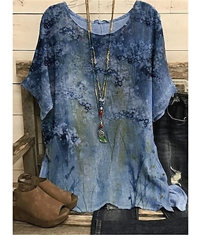 Dame T skjorte Trykt mønster Blomstret Grafisk Planter Bohem Årgang Stilfull Kortermet Crew-hals Rund hals Vanlige topper Daglig Ut på byen Helg Blå Gul Lilla Grønn Sommer Vår