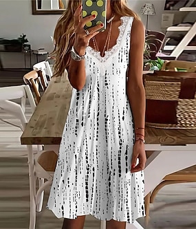 Dame Uformell kjole Feriekjole Solkjole Midikjole Hvit Grå Ermeløs Blomstret Blonde Vår Sommer V-hals Grunnleggende Daglig Feriereise Løstsittende 2023 S M L XL XXL 3XL