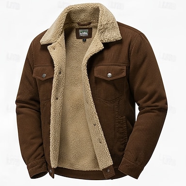 Herre Kordfløyel jakke Fleece-jakke Formell Hjem Hold Varm Lomme Ren Høst Vinter Helfarge Aktiv Nøytral Skjortekrage Normal Svart Kakifarget Mørkegrå kaffe Jakker