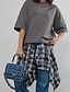 Kvinners 100% Bomull Tunika T-skjorte Mote Uformell Trykk Langermet Vanlige topper Rund hals Daglig Svart Hvit Vin Grå Vår Høst