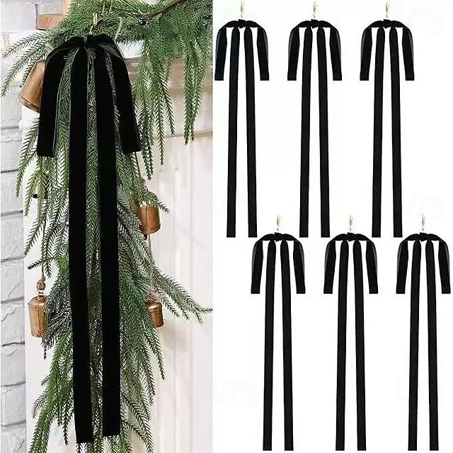 6 stk. store fløyelssløyfer til julepynt – elegant hengende julepynt med gullring til juletre, krans og girlander – ingen strøm nødvendig, enkel å henge opp, perfekt til feriehuset, festen eller#10066128