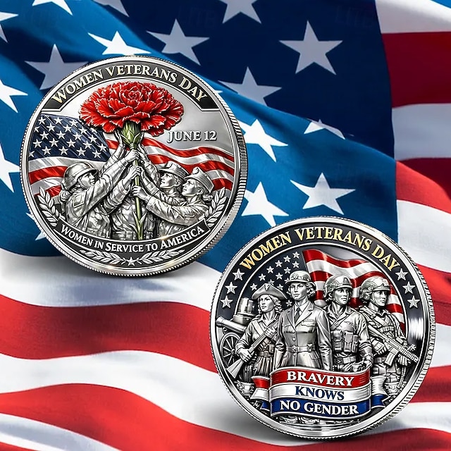 Minnemynt for kvinneveterandagen som hedrer mot og tjeneste for kvinnelige militærhelter, patriotisk samlermedalje, inspirerende gave til feiring av 12. juni#11752985