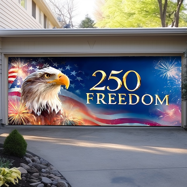 4. juli 2026 250-års minnedag 250 Frihet Bald Eagle Amerikansk flagg fyrverkeri Garasjeport banner utendørs patriotisk dekorasjon uavhengighetsdag 4. juli feiring bakgrunn#12014562