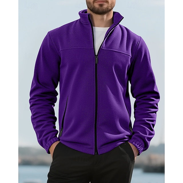 Herre Genser Fleecegenser Genser med full glidelås Aprikos Svart Lilla Oransje lysegrå Opprett krage عادي Ta igjen glidelåsen Lomme Sport & Utendørs Daglig Ferie Polyester Gatemote Grunnleggende#12193525