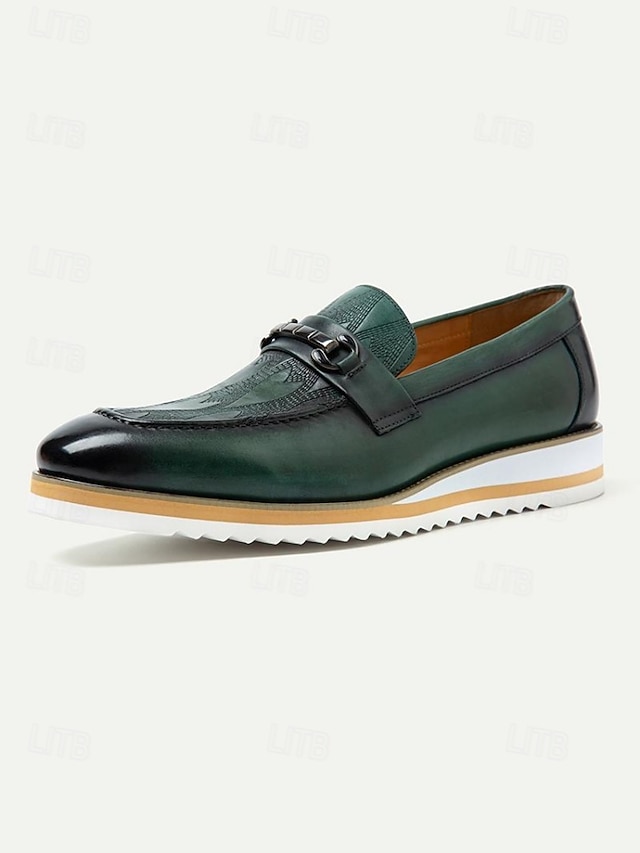 Grønne herresko i skinn, elegant slip-on-design, komfortabel polstret såle, stilig, avslappet utseende for bryllup, fester og hverdagsbruk #12412249