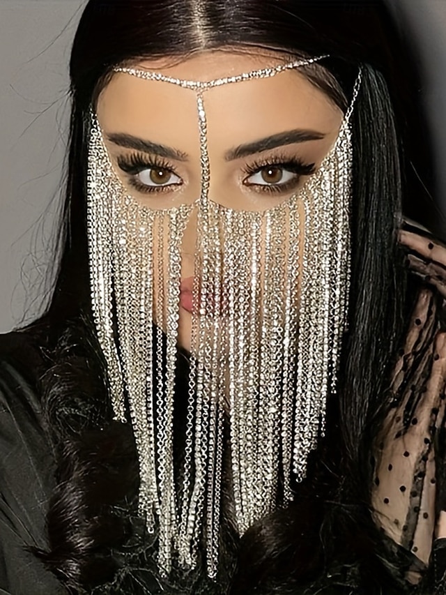 damemaske med strass-frynser - glitrende dusk-ansiktsmykke tilbehør til fest, festival, maskerade og klubbantrekk#12503258