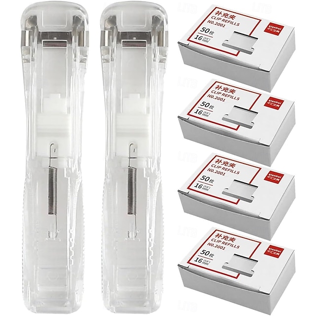 Bærbar permklipsstiftemaskin, påfyllbart stiftemaskinsett for kontoret med 2 bærbare papirklippere og permer og 200 stk. påfyllingsklips for filinnbinding og dokumentinnbinding#12512655