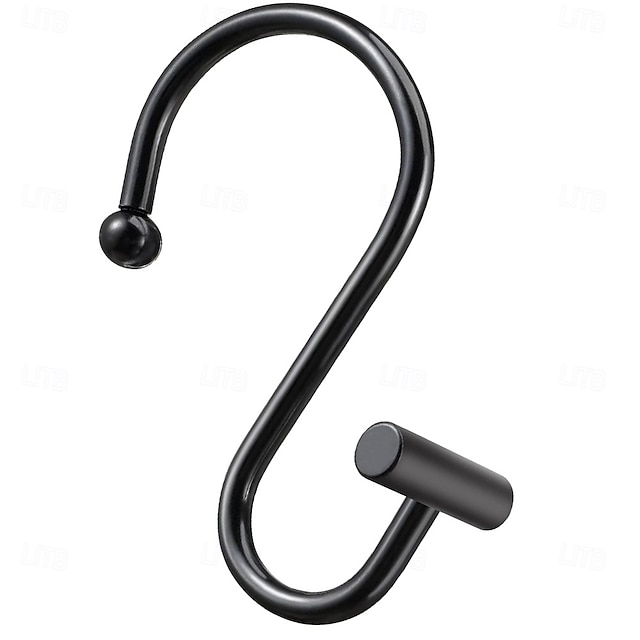 Nikkelkroker til dusjforheng, rustfrie ringer til dusjforheng til baderom, dekorative kroker til dusjforheng i sølvmetall for oppheng til dusjforhengsstang, sett med 12 T-stangdesign#13035688