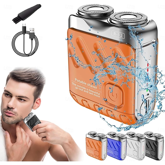 Bærbar roterende elektrisk barbermaskin med dobbel ring, mini-skjeggbarbermaskin med koffertdesign, vanntett reisebarbermaskin for menn, hurtiglading med lang batterilevetid og magnetisk kutter med#13137671