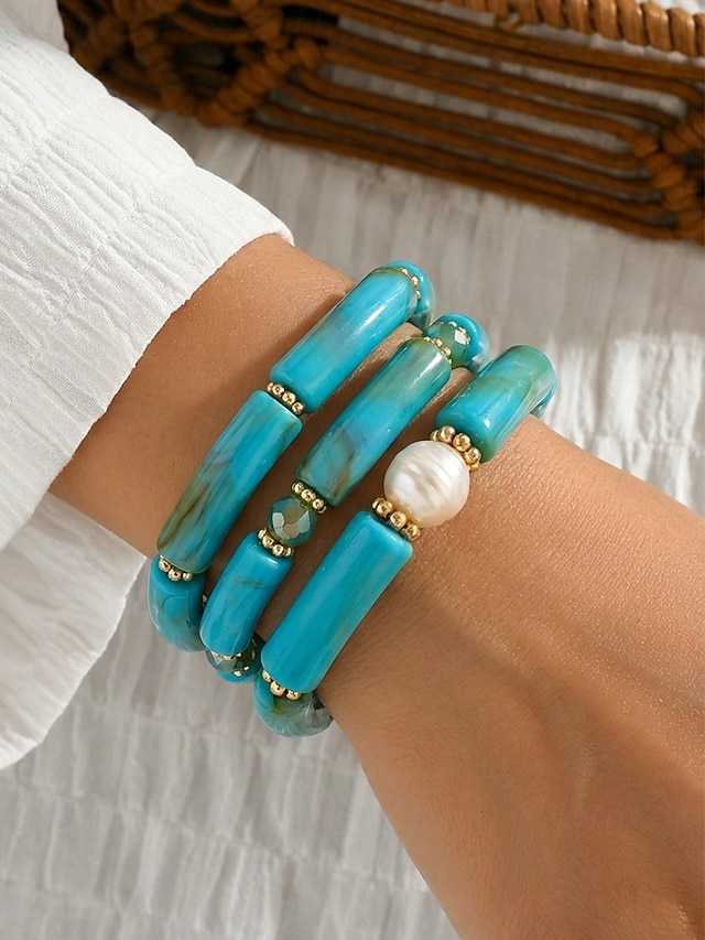 Bohemsk 3-delt armbåndssett i akryl for kvinner, elastiske, stabelbare armbånd, perfekt for strandferie, hverdagsbruk og sommertilbehør #13585646
