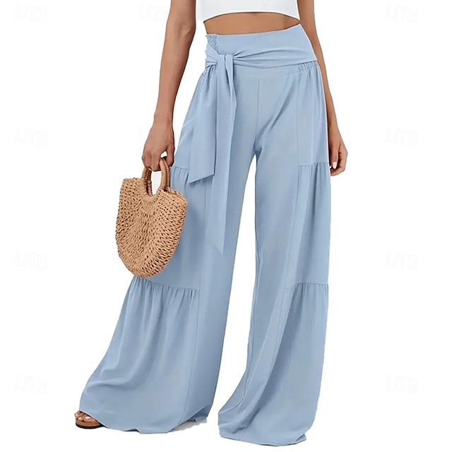 Kjønn:Dame,Bukser Type:Sommerbukser,Bukser,Strandbukser,Stil:Ferie,Mote,Fritid hverdag,Anledning:Gateklær,Ferie,Strand,Stoff:Polyester,Design:Snorer,Lapper,Bred Bukseben,Midjetype:Middels midje,Elastisitet:Uelastisk,Ta vare på meg:Vaskbar,Våd og Tør,Maskinvask,Bukselengde:Full lengde,Funksjon:Hurtigtørkende,Myk,Komfort,Passform:Løstsittende,Flytype:Elastisitet,Mønster:عادي,Helfarge,Årstid:Vår,Høst,Sommer,