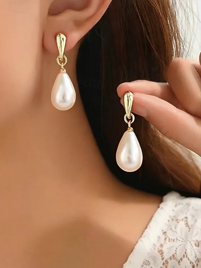 Øredobber med imiterte perler til dame – tilgjengelig i gull og sølv, elegant design for bryllup, kveldsarrangementer og hverdagsbruk#14219158