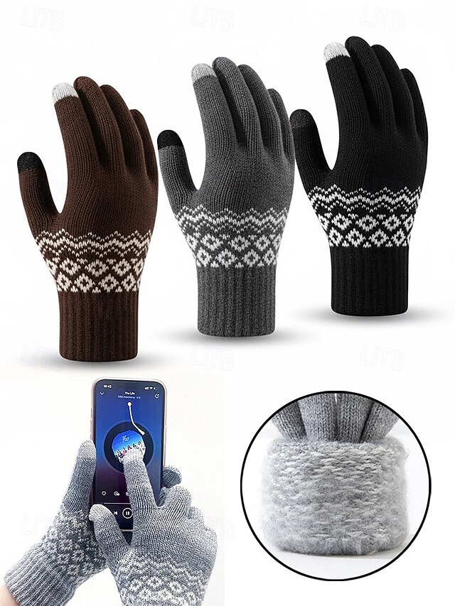 Julehansker med berøringsskjerm til herre, flere farger, varm strikk med Fair Isle-mønster, ideelle for vinter- og høytidsaktiviteter #15268732