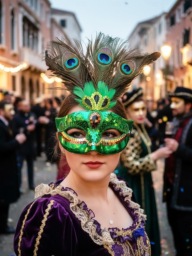Kvinnes påfugl fjær venetiansk masquerade-maske - grønn paljetter kostyme tilbehør karnevalpartier Mardi Gras cosplay  elegante masquerade-arrangementer 2026 - $19.99 –P4