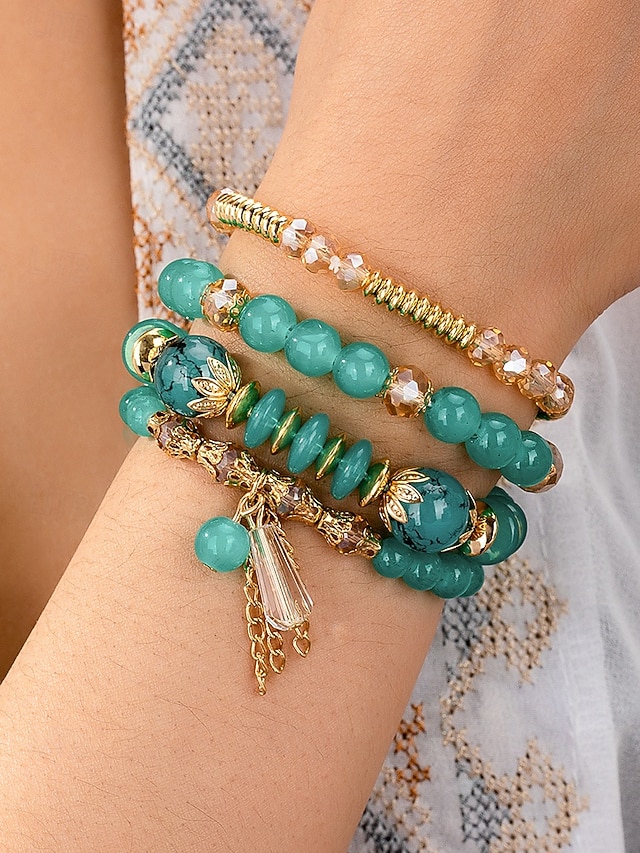 Damearmbånd med imiterte krystallperler og gulldetaljer, bohemsk lagdelt stretcharmbåndsmykke til fester, bryllup og hverdagsbruk #16365803