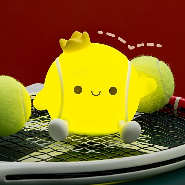 Tennis nattlampe i silikon med kran, myk LED-nattlampe med berøringskontroll, 2 dimbare nivåer, øyevennlig glød, oppladbar nattlampe til barnerom, søt gave til tenniselskere#16601426