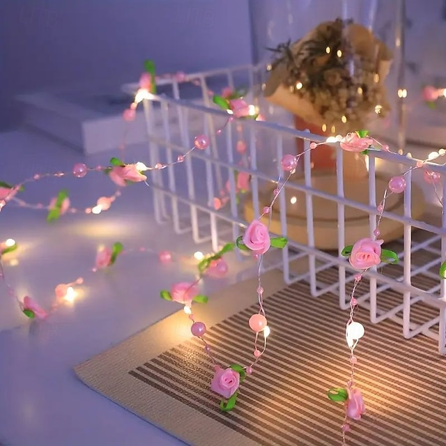 Elegant Perle Rose Formet LED Lyslenker 2m 20 LEDs Batteridrevet Bryllup Bursdag Fest Hjem Patio Hage Blomster Tre Dekorasjon #17327873