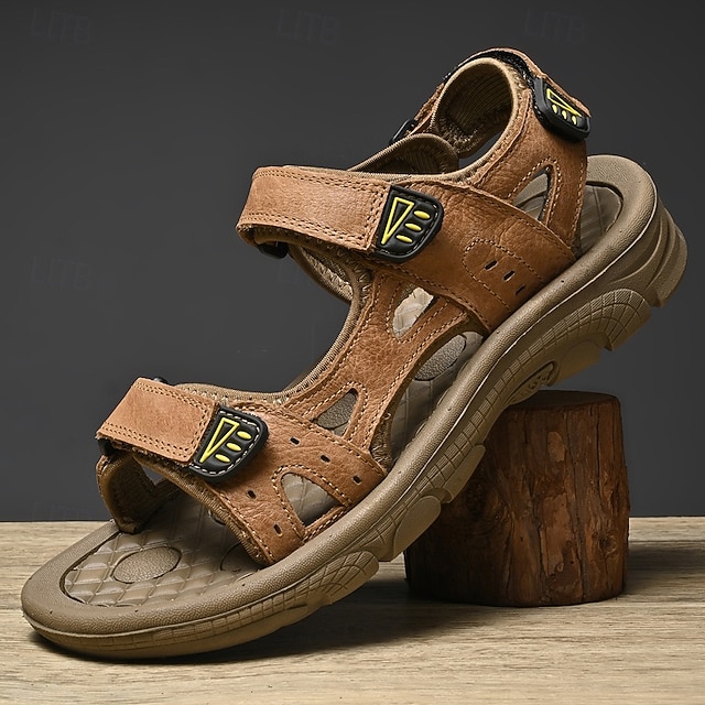 herre brune utendørssandaler justerbare sportssandaler med borrelås åpen tå komfortable tursko for fotturer, reiser, strandferie, camping, utendørseventyr og sommerens daglige bruk#17695497