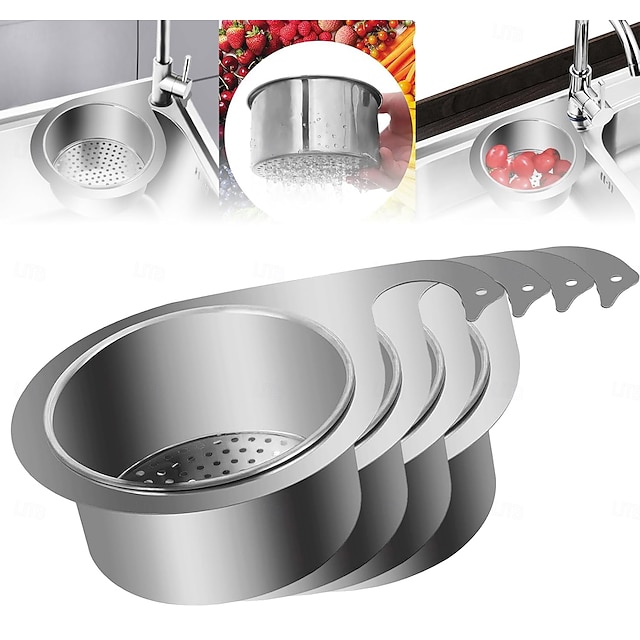 4 stk. kraftig avløpskurv i rustfritt stål til undervasken - plassbesparende kjøkkenorganisator med enkel rengjøring, solid konstruksjon, elegant design, moderne oppvaskkumtilbehør til kjøkken#17740286