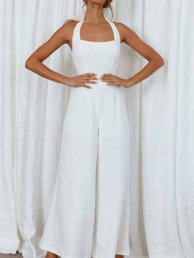 Dame Normal Kjeledresser Elegant Helfarge Ermeløs Bred Bukseben Grimehals Åpen rygg Daglig Feriereise Løstsittende Hvit Lysegrønn Rosa Sommer #18911859