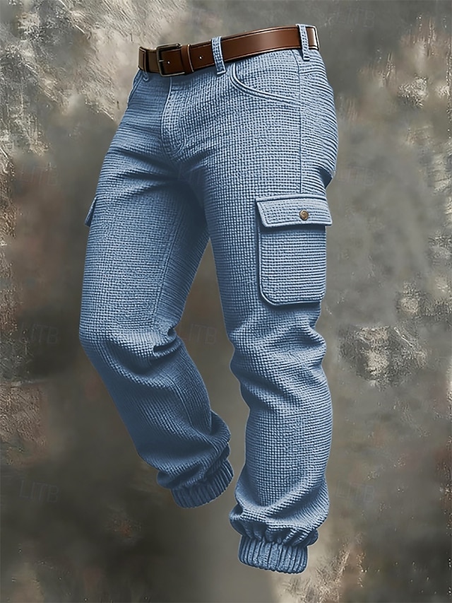 Herre Militærbukser Bukser Vaffelbukser Knapper Multi lomme عادي Anvendelig Daglig utendørs Camping & Vandring Mote Klassisk Svart Himmelblå #19244323