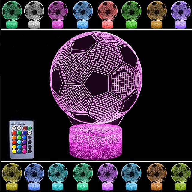 Gave fotball 3D nattlys barn 16 farger endring optisk illusjonslamper med fjernkontroll bursdagsgaver til sportsfan gutter jenter og voksne#7923717