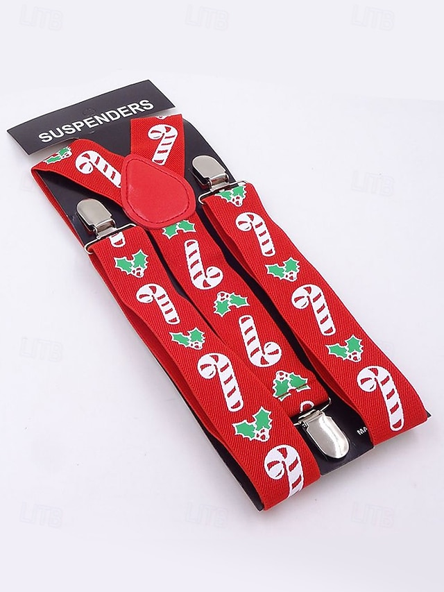 Juleseler til herre – røde med sukkerstang- og kristtorndesign, justerbare for høytidsfester og festlige sammenkomster#16056621