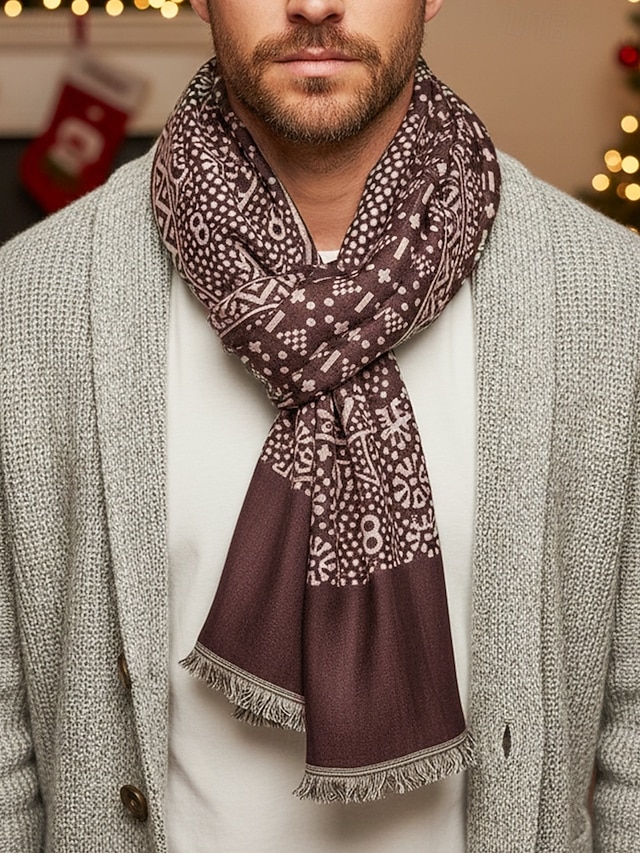 Herreskjerf i bomull med etnisk paisleymønster, mykt og lett sjal, julegave til ham, fritids- og høytidsklær#10131568