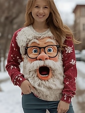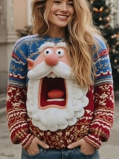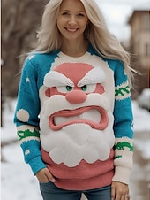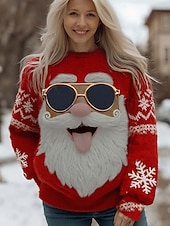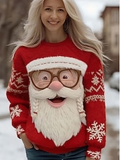 Dame Genser søt stil Gatemote Fritid Grafisk julenissen snowflakes Crew-hals Lapper Strikket Langermet Vanlige topper Strikke Jul Fest Ferie Rødbrun Hvit Vår Høst #12546221
