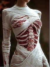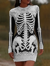 Kvinners Genser Søtt Gateklær Løs Grafisk Skjelett Rund U-hals Patchwork Strikket Lang Erm Vanlige Topp Strikk Svart Rød Høst Vinter #15901847