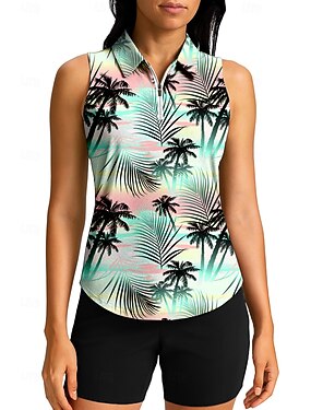 Dame Grafisk Tropisk Blomster botanikk Sportsskjorte POLO T-skjorte Tennisskjorte Ermeløs Glidelås Høy Elastisitet Fukttransport Pustende Tennis Golf Pickleball Aftæpning Glidelåskrage Skjorte Topper
